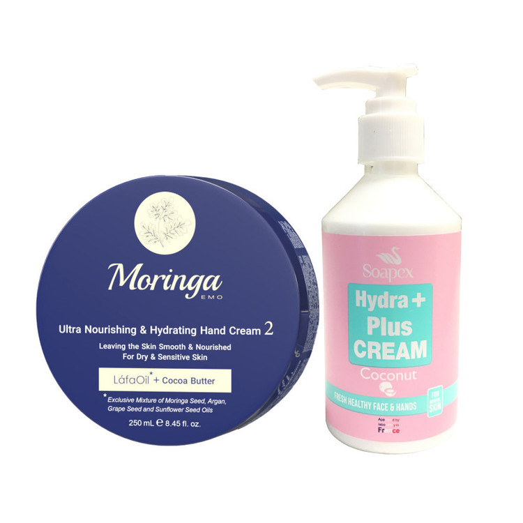 کرم نارگیل سوپکس: با افزایش سن و شست و شوی زیاد، رطوبت پوست از بین میرود و احساسی مانند کشیدهشدن پوست پدید میآید. به کمک کرم مرطوبکنندهی سوپکس بهراحتی خشکی پوست برطرف میشود. این کرم را میتوان برای دست، صورت و بدن استفاده کرد و بابت ناسازگاری آن با پوست نگرانی نداشت؛ چراکه مناسب انواع پوستهاست و بهراحتی جذب میشود. با شستوشو، لایه و چربی روی پوست برداشته میشود که اگر رطوبترسانی به آن در زمان لازم انجام نشود، باعت بروز ناراحتیهای پوستی مانند خشکی و خارش خواهد شد. کرم دست فوق مغذی و آبرسان مورینگا امو 2: این محصول با قدرت آبرسانی بالا و بافت بسیار سبک و ابریشمی، به سرعت جذب پوست شده و منجر به حفظ و تامین رطوبت برای پوستهای خشک میشود. این محصول علاوه بر تامین مواد مغذی، موجب کاهش سوزش، خارش، التهاب و خشکی پوست میشود. ترکیبات این محصول: LáfaOil (لافا اویل: ترکیبی انحصاری شامل روغنهای گیاهی مورینگا، آرگان، هسته انگور و دانه آفتابگردان و ویتامین A و E) + کره کاکائو است.