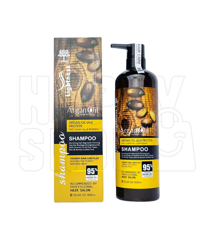 روغن آرگان موجود در شامپو مو آرگان لایتنس Lightness باعث آبرسانی هرچه سریع تر به موها شده و سبب جلوگیری از خشکی و وزی مو میشود. در نتیجه موهای شما نرمتر و لطیفتر میگردد. این محصول حاوی۹۵% روغن ارگان و ابریشم مایع میباشد که تغذیه کننده و رطوبت رسان موها بوده و سبب تقویت، ترمیم و درخشندگی موها میشود.