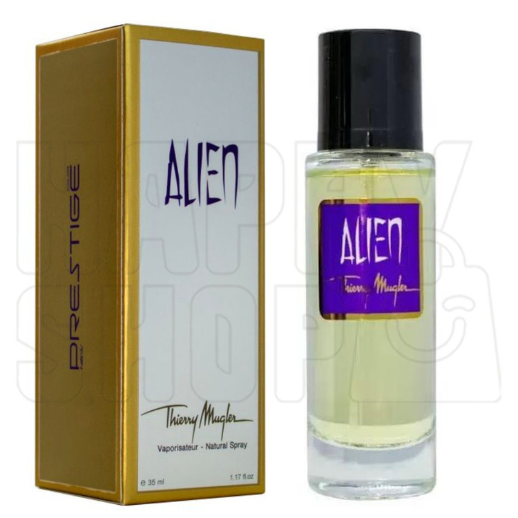 مارک پرستیژ پرفیوم هایی تولید نموده که از لحاظ رایحه و ماندگاری بسیار شبیه نمونه های اصلی میباشند.این پرفیوم ها که قیمت بسیار مناسبی دارند جایگزین خوبی برای نمونه های اورجینال با هزینه های بالا می باشند و رضایت شمارا به عنوان یک عطر خوب جلب میکنند. Alien رایحه ی گل یاس و ترکیب هنرمندانه و فوق العاده ی آن با نت های چوبی و کهربا عالی و باورنکردنی بوده به طوری که هر انسانی را جذب خود خواهد کرد. رایحه اکثر این عطرها با بوی گل شروع شده، شما را از میان جنگلها عبور داده و به بوی گرم و محکم کهربا میرساند رایحه این عطر، در مجموع متمایل به سمت گلهای سفید است. بوی گل، حس زیبای شادی و آرامش را برایتان به ارمغان می آورد.