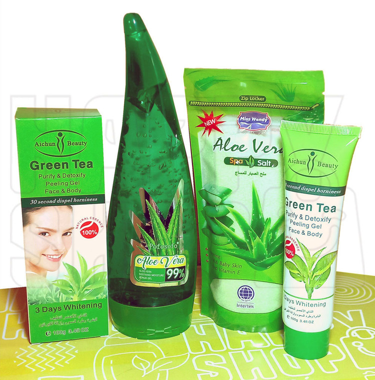 پک مراقبت پوست سبز(اسکراب، نمک حمام، ژل آلوئه ورا)