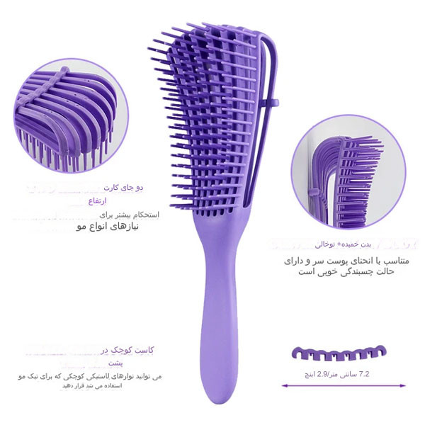 این برس مناسب باز کردن گره ی موهای فر ریز، فردرشت، موج دار و انواع موی فر است.جنس پلاستیک منعطف وسیلیکونی دارد خیلی محکم وخوش دست است، هشت ردیف باریک دارد که با یک نوار به هم متصل میشوند و میتوانید از این نوار استفاده کنید یا میتونید نوار رو بردارید این برس یکی از محبوب ترین برس ها بین موفرفری هاست چون مو ها را نمیکشد و خیلی راحت ونوازشی گره های سخت مو ها را باز میکند. این برس را میتوانید تنظیم کنید اگر موهای پر و کوتاهی دارید نوار پشتی برس را بالا تنظیم کنید و اگر موهای بلند و ضخیمی دارید نوار را پایین تنظیم کنید.